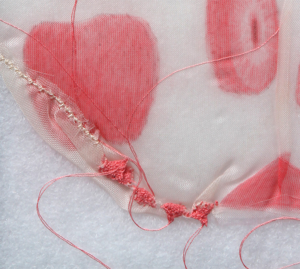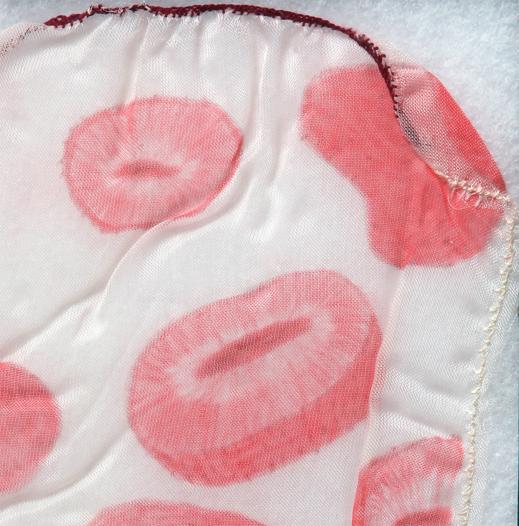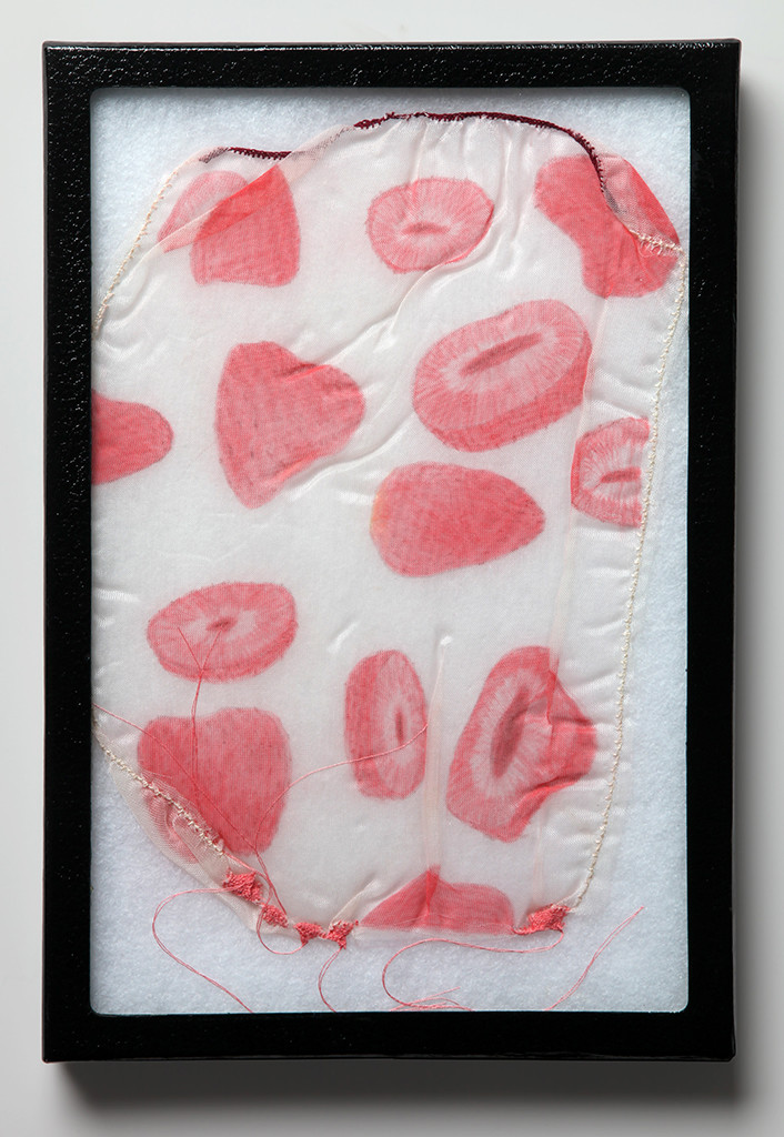 Pencil and colored pencil on sheer polyester, thread, specimen box