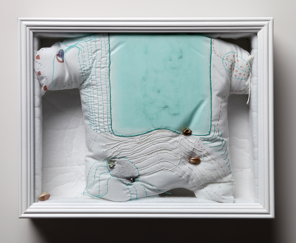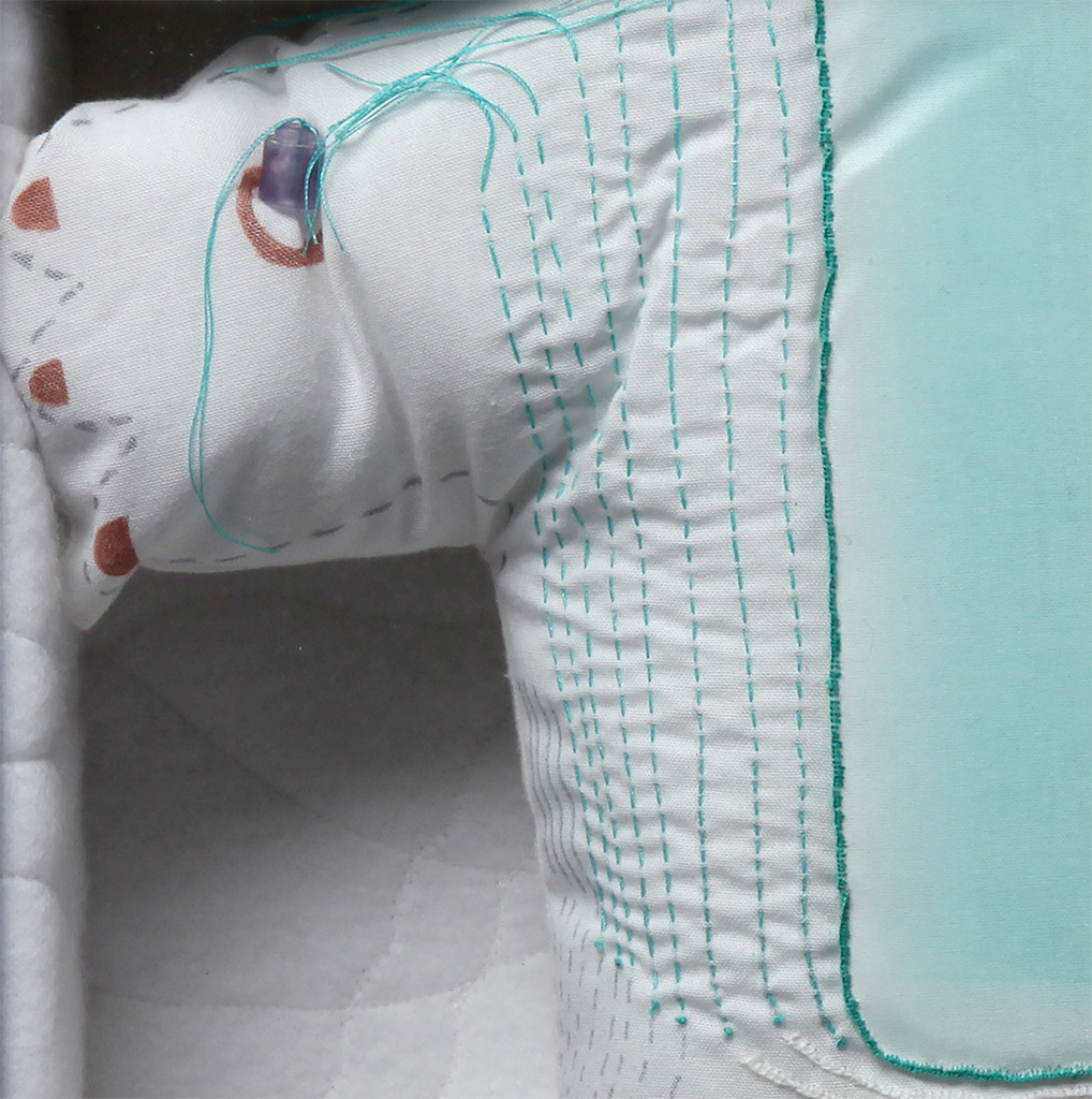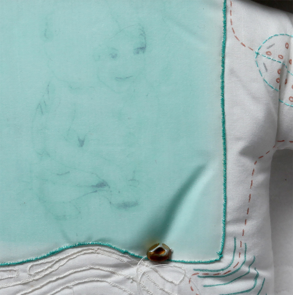 Digital t-shirt transfer on bedding, thread, beads, marker