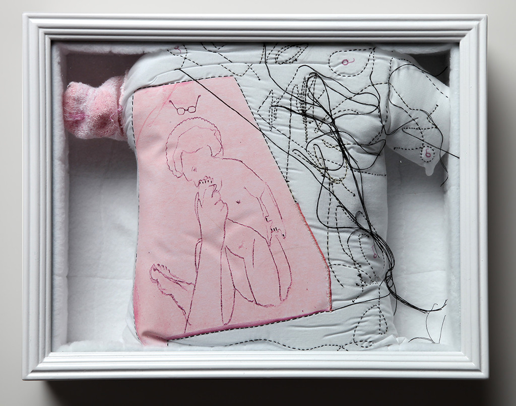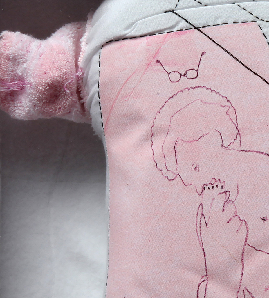 Digital t-shirt transfer on bedding, thread, baby sock, marker
