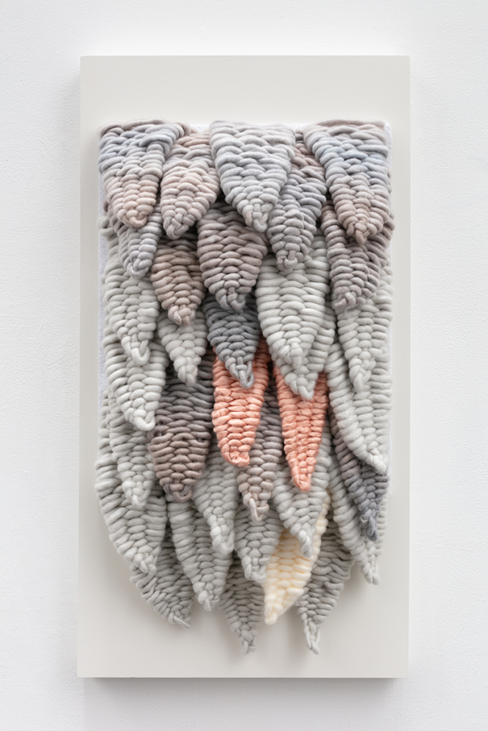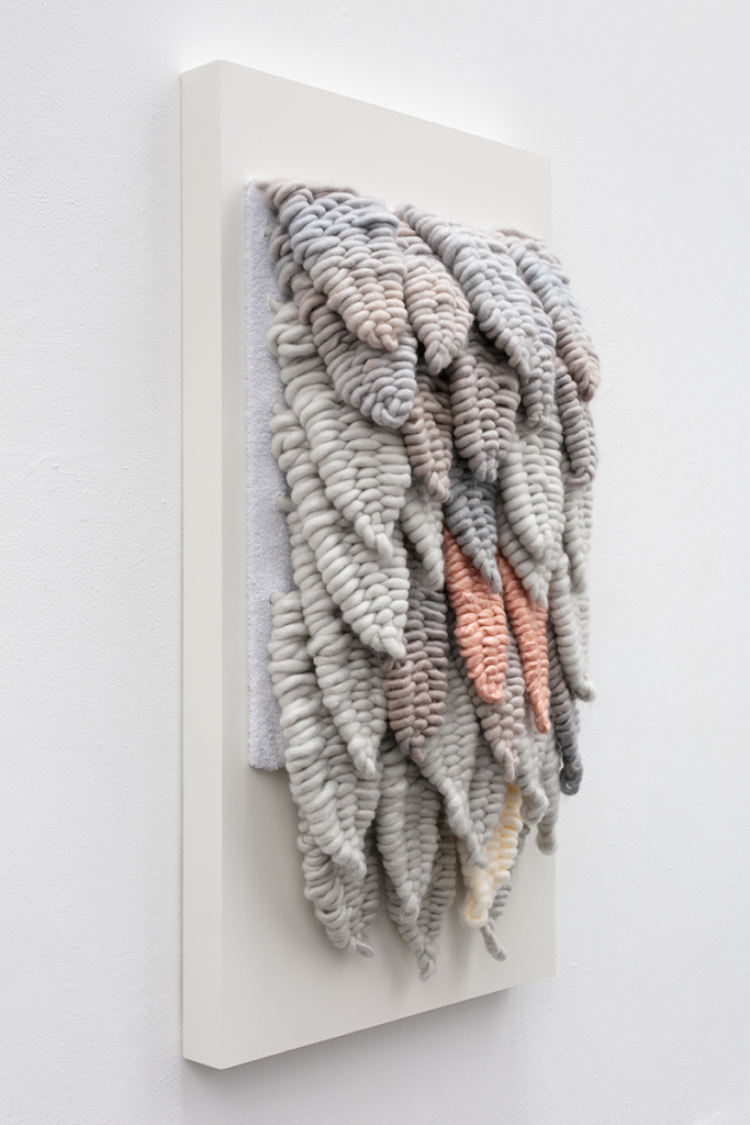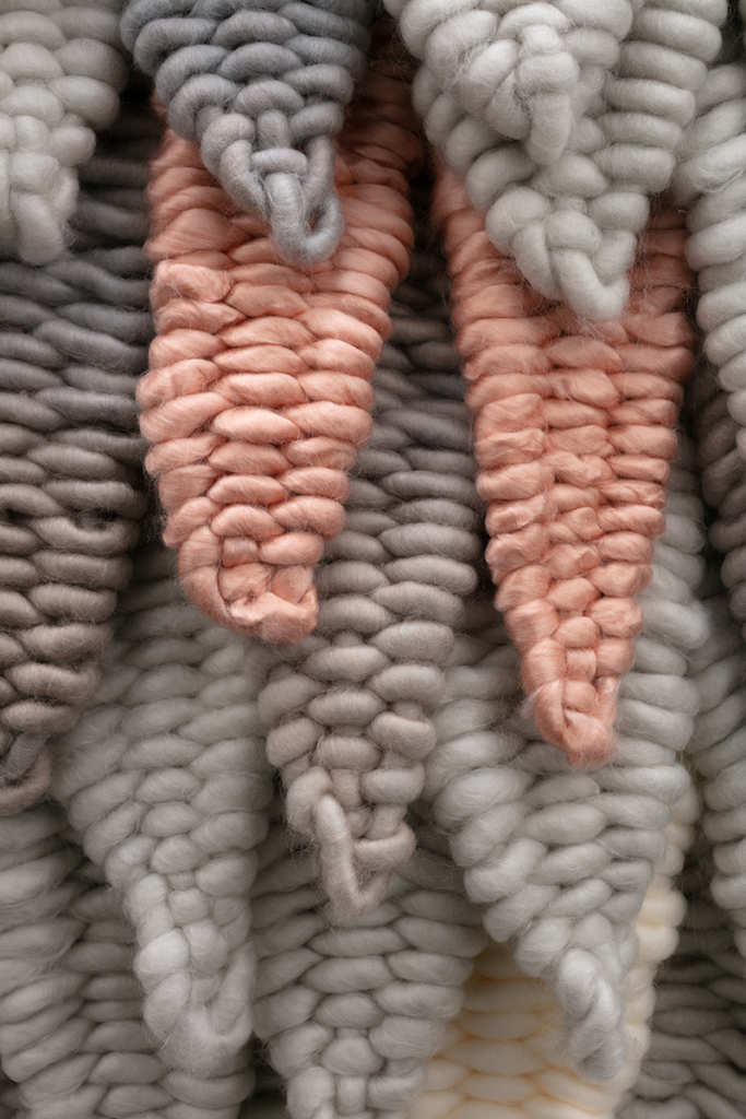 Oversized acrylic yarn, terrycloth, wood, latex paint